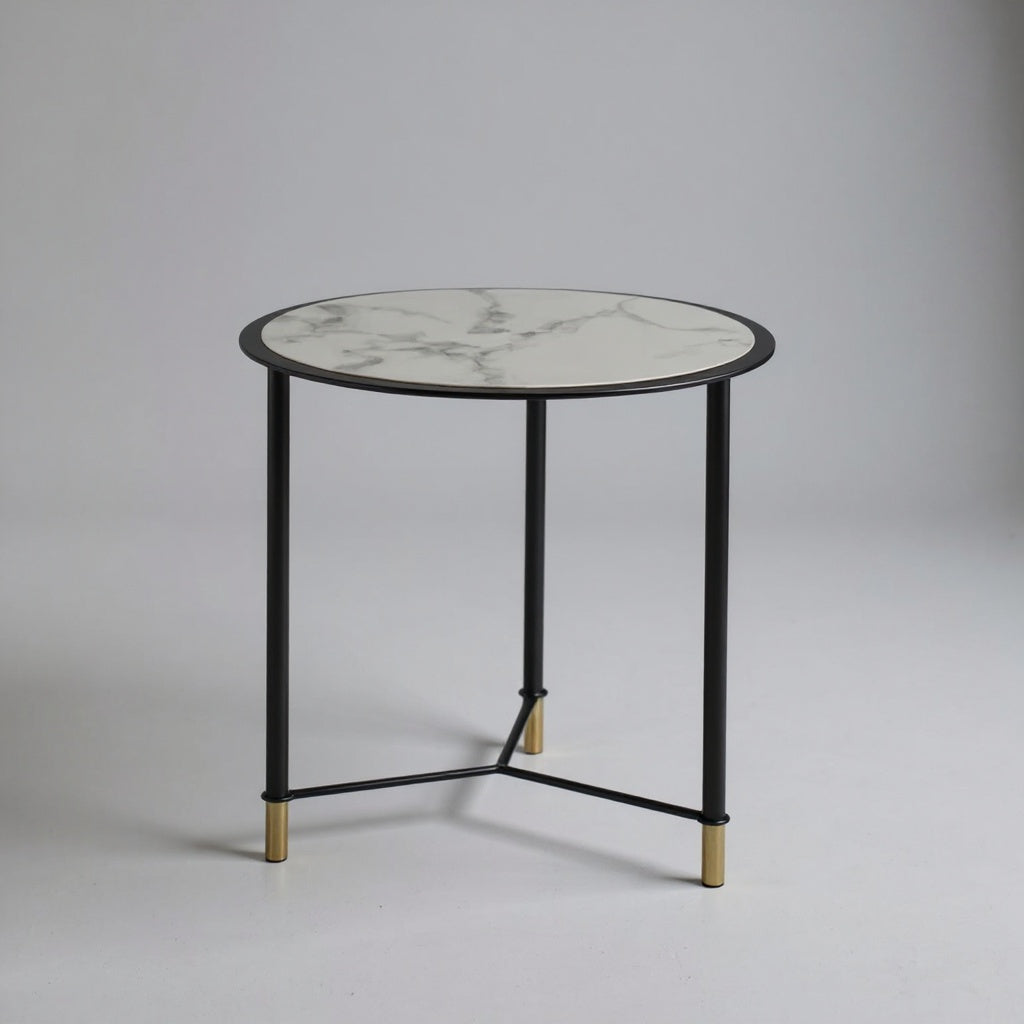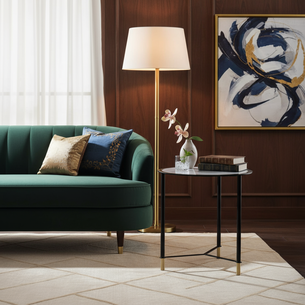 Lisa End Table is finely crafted from a tempered Glass top with Black Iron legs finished with champagne gold bottom feet.