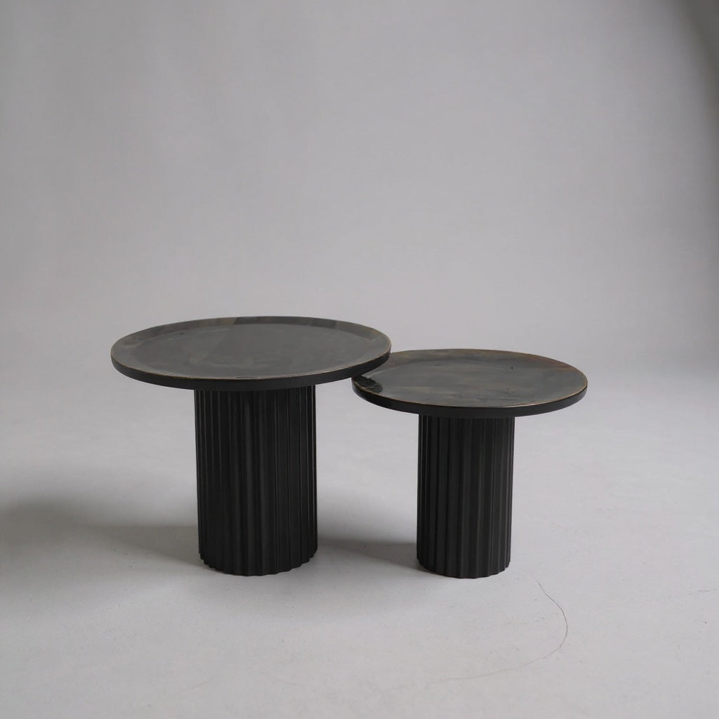 Designed for flexibility, the nesting-style tables can be used together for a layered, dynamic look or separately to accommodate different spaces and needs. Their sturdy, well-crafted base ensures stability while adding a contemporary touch to the overall aesthetic.